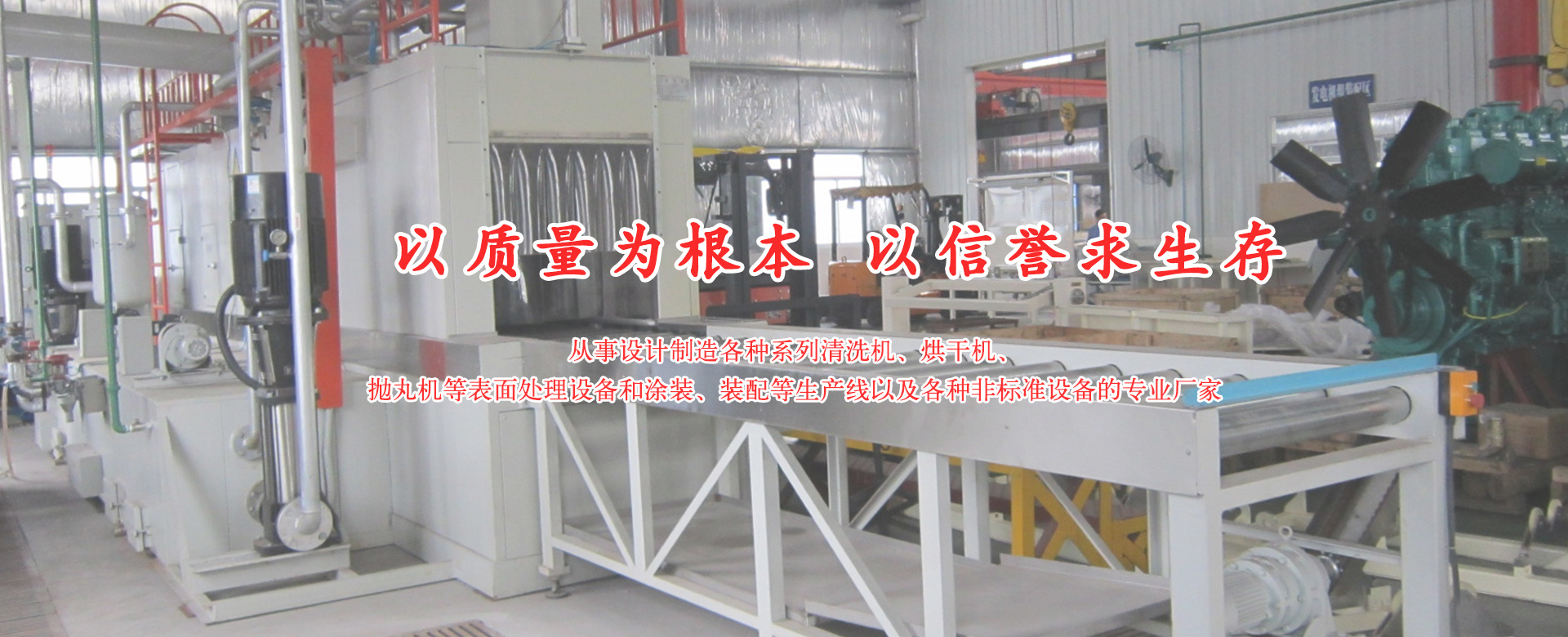 從事設(shè)計制造各種系列清洗機、烘干機、拋丸機等表面處理設(shè)備和涂裝、裝配等生產(chǎn)線以及各種非標準設(shè)備的專業(yè)廠家。